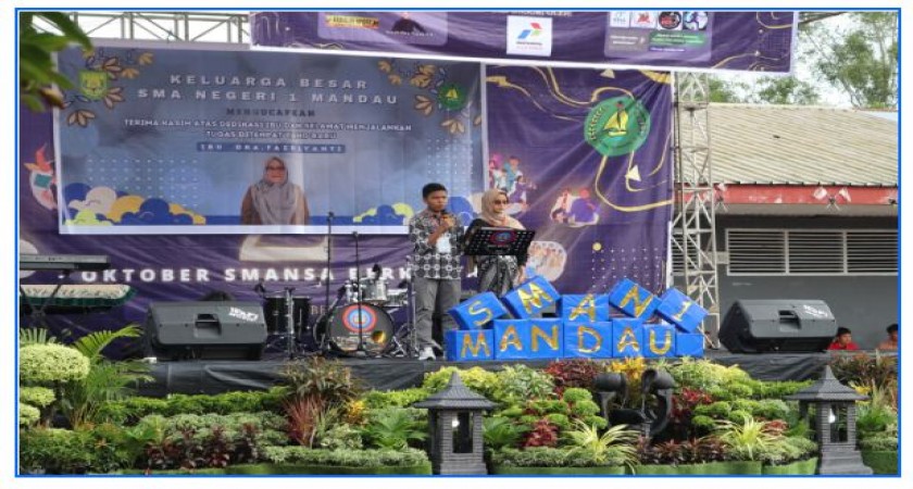 Ade Chandra selaku pembina OSIS, dan setelah itu sanggar tari SMAN 1 MANDAU menampilkan sebuah tari persembahan, acara selanjutnya adalah salam perpisahan yang disampaikan oleh ketua osis 2023/2024 Muhammad Panji Pratama yang menyampaikan sepatah katah perpisahan untuk ibu Dra Fazriyanti yang telah menjabat sebagai kepala sekolah di SMAN 1 MANDAU ini. Setelah itu kata sambutan beserta salam perpisahan yang disampaikan oleh ketua osis 2022/2023 Andreas Rivaldo, Kata sambutan oleh ibu Gemina Zeiva S,pd selaku perwakilan staff dewan guru yang menyampaikan salam perpisahan kepada kepala sekolah SMAN 1 MANDAU, ternyata tidak hanya ibu Gemina saja tetapi ada juga kata sambutan oleh bapak Amran Syarif S,Ag. Setelah acara penyambutan dan salam perpisahan kepada ibu fazriyanti, siswa/i SMAN 1 MANDAU menampilkan paduan suara. Dan acara penutup ialah Kata Sambutan Beserta salam perpisahan hangat yang disampaikan oleh ibu Dra Fazriyanti.
